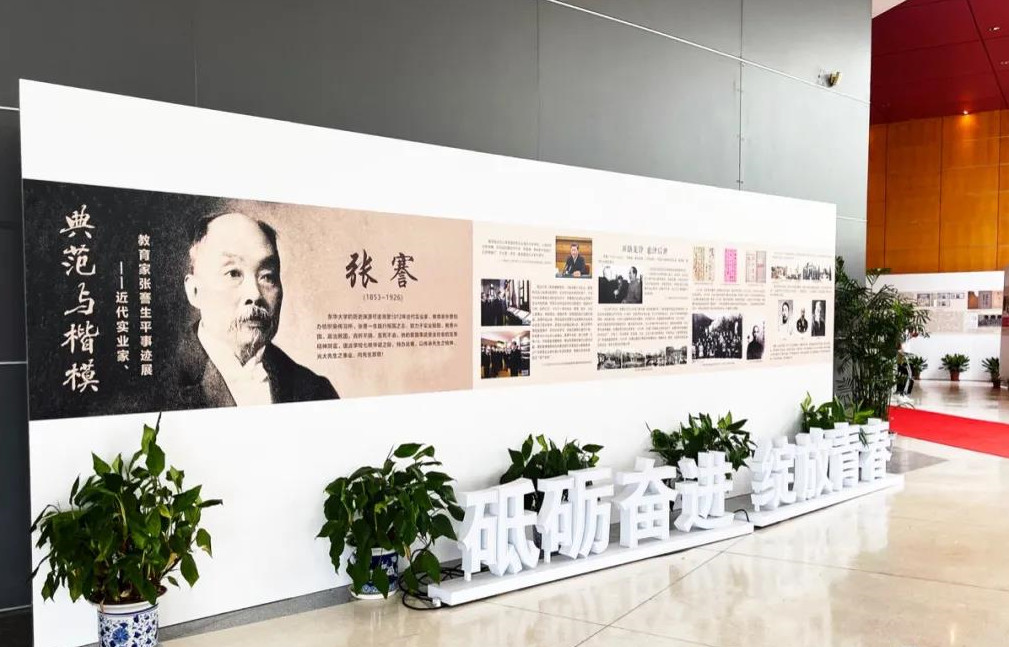 落成儀式后所有參會人員一起前往松江校區(qū)圖文信息中心二樓大廳參觀張謇生平事跡展,展會介紹了張謇“實業(yè)救國”的豐功偉績,大家紛紛被張謇的壯舉深深鼓舞和感動。