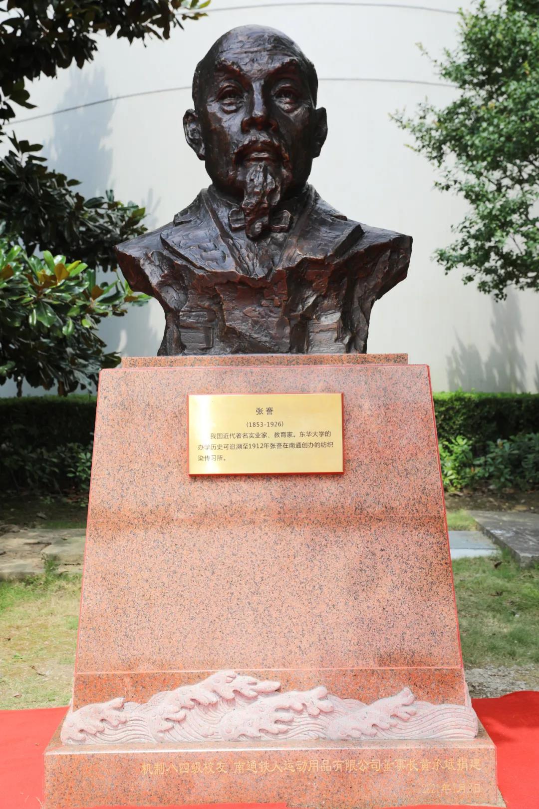 日月梭七秩,錦繡繪新篇。7月8日,在中國共產(chǎn)黨建黨100周年之際,東華大學(xué)隆重舉辦70周年校慶倒計時100天系列活動。全國政協(xié)原常委、全國政協(xié)社會與法制委員會原副主任、張謇嫡孫張緒武,中國紡織服裝教育學(xué)會執(zhí)行會長倪陽生,東華大學(xué)黨委書記劉承功,東華大學(xué)校長、中國工程院院士俞建勇,南通日報社副社長、副總編輯,江海晚報總編輯宋捷等出席了張謇塑像落成儀式。劉承功、張緒武、黃承斌分別代表東華大學(xué)、張氏后人、東華校友發(fā)言,副校長陳革主持了儀式。鐵人體育黃承斌董事長為表達對母校教育事業(yè)的發(fā)展與支持,捐贈了這尊張謇塑像。