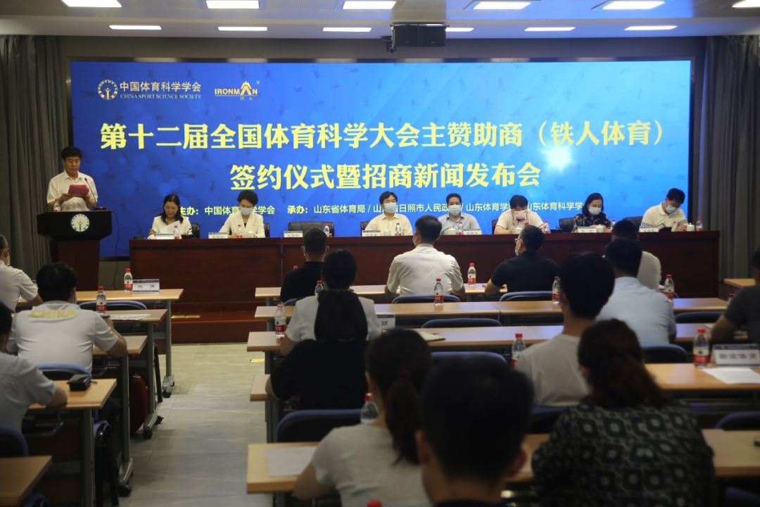 第十二屆全國體育科學(xué)大會(huì)主贊助商簽約儀式暨媒體見面會(huì)于7月12日上午11點(diǎn)在國家體育總局體育科學(xué)研究所五樓會(huì)議室召開。鐵人體育與中國體育科學(xué)學(xué)會(huì)正式簽約,成為第十二屆全國體育科學(xué)大會(huì)主贊助商。國家體育總局科教司二級(jí)巡視員隆勝軍、中國體育科學(xué)學(xué)會(huì)副理事長兼秘書長、國家體育總局科研所所長馮連世、中國體育科學(xué)學(xué)會(huì)副理事長祝莉、山東體育學(xué)院校長毛德偉、日照市委副秘書長、體育局局長孟凡香、山東體育學(xué)院副校長毛莉虹、山東省體育局科技教育宣傳處處長許鐵軍、南通鐵人運(yùn)動(dòng)用品有限公司董事長黃承斌出席了新聞發(fā)布會(huì)。中國體育科學(xué)學(xué)會(huì)常務(wù)理事、國家體育總局科研所副所長楊杰主持新聞發(fā)布會(huì)。