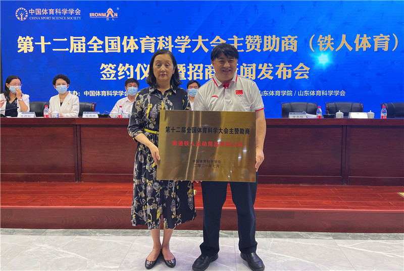 本次發(fā)布會(huì)上,中國體育科學(xué)學(xué)會(huì)副理事長、秘書長馮連世代表中國體育科學(xué)學(xué)會(huì)與南通鐵人運(yùn)動(dòng)用品有限公司董事長黃承斌簽約,中國體育科學(xué)學(xué)會(huì)副理事長祝莉代表組委會(huì)向南通鐵人運(yùn)動(dòng)用品有限公司董事長黃承斌授牌。